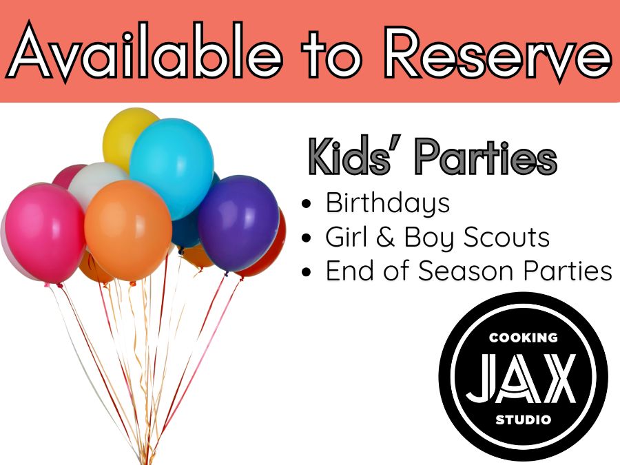 Questions? Contact us at (904) 379-6220 or by email at hello@jaxcookingstudio.com