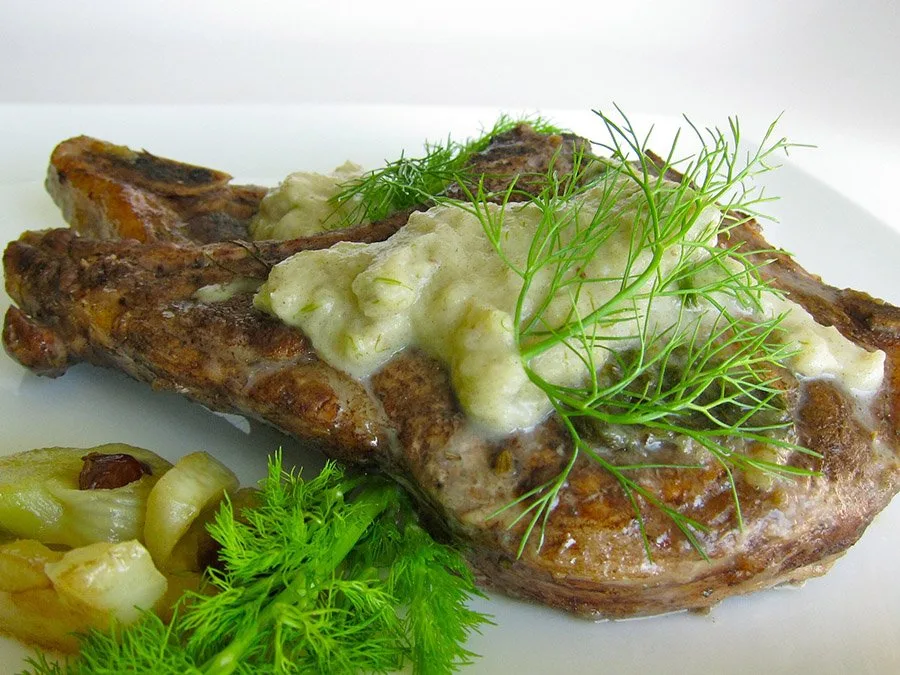 Seared Herb and Garlic Pork Chops with a Fennel Caper Sauce
